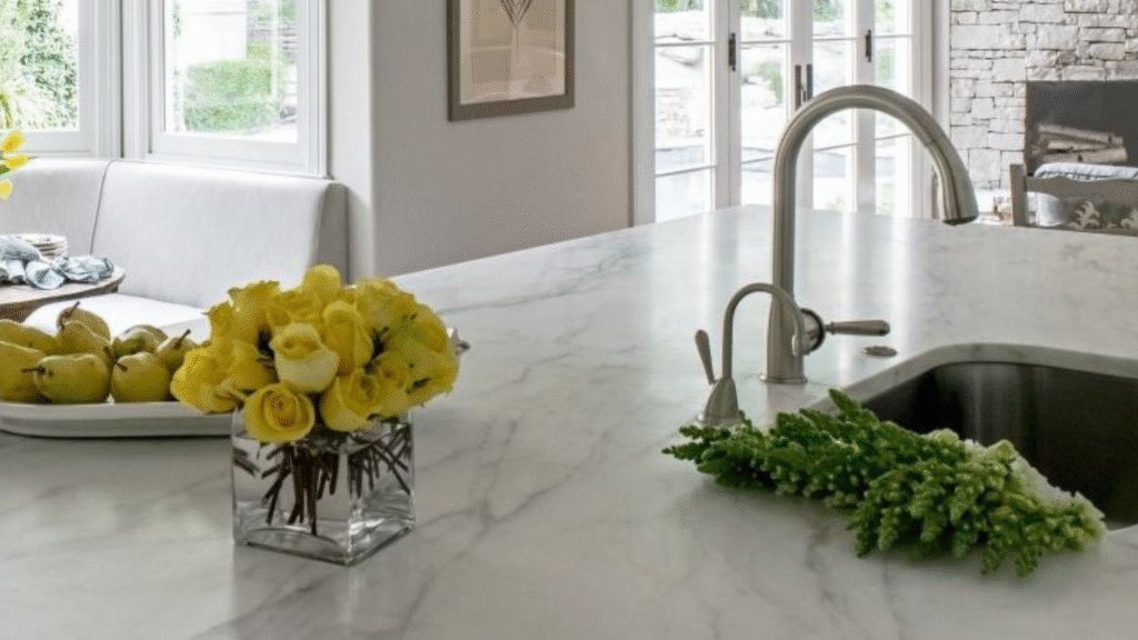 “Marble is a calcium-based stone,” he says. “It’s softer and prone to scratches and etching. Their lack of durability means you have more things to consider as far as everyday use.”