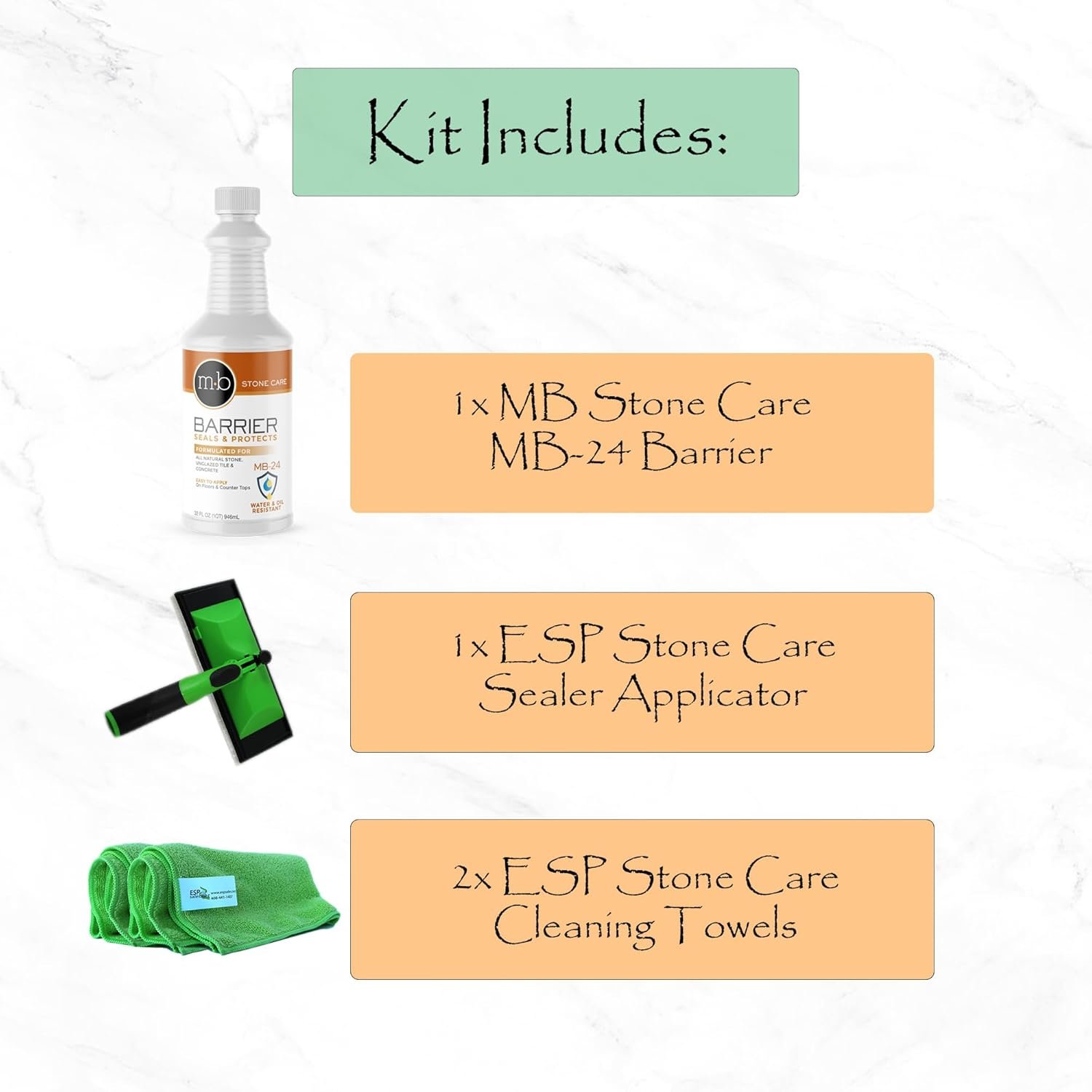 Maintain the brilliance of your marble and granite with the trusted MB Stone Care stone sealer kit—the simple, effective way to protect and extend the life of your stone.